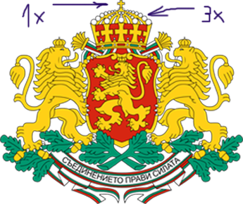 Чл. 2, ал. 1 Гербът на Република България е изправен златен коронован лъв на тъмночервено поле във формата на щит. Над щита има голяма корона, първообраз на която са корони на български владетели от Втората българска държава, с пет кръста и отделно кръст над самата корона... ...